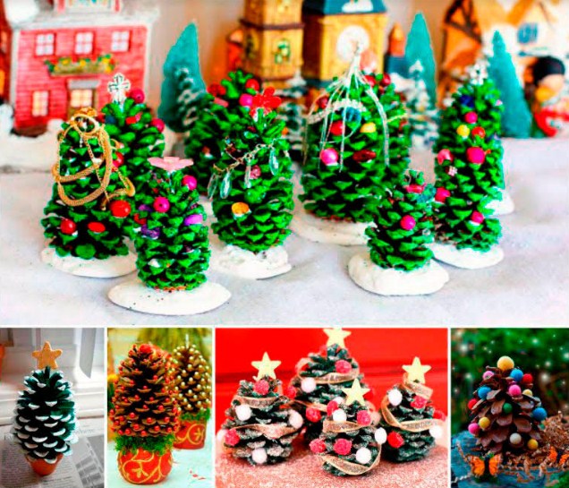 Можна зробити і зовсім маленькі деревця з поздовжніх шишок. І навіть розфарбувати їх у зелений колір або продекорировать різними намистинами: