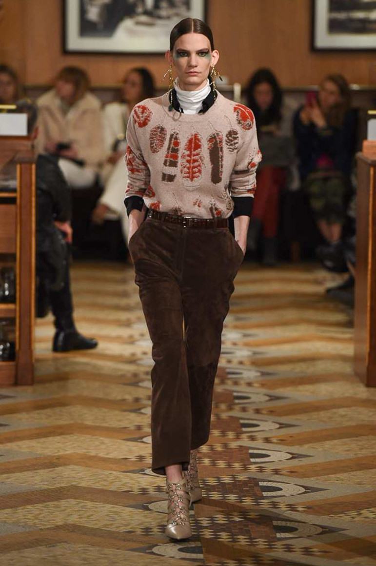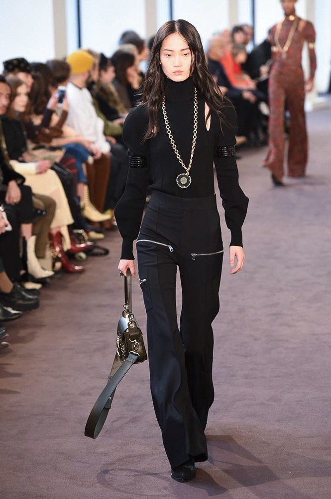 Найкращим варіантом штанів під водолазку стилісти вважають розкльошені моделі. Брюки кльош родом з 70-х років, так само як і водолазка. Сьогодні вони не так поширені, як обтягуючі моделі, але все-таки на подіумах в деяких колекціях представлені дані варіанти. Вільний нижній крій жіночих штанів компенсується обтягуючим верхнім виробом. Хоча водолазка-2018 не така вже й тісна. В ній допускаються рукави-ліхтарики, широка горловина або не приталений силует. Взуття під штани з водолазкою потрібно підбирати грамотно. Вона повинна бути виконана або в спортивному стилі, або на маленькому і стійкому каблуці. Ніяких шпильок в таких образах не допускається. Укорочені брюки абсолютно не поєднуються з водолазкою.