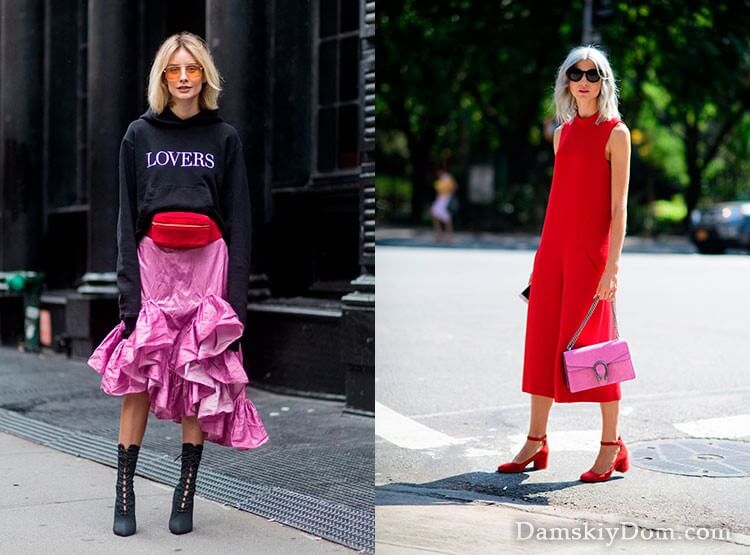 Однак протилежності притягуються, причому так само, як і червона спідниця з ніжно-рожевою блузкою (і навпаки). По-весняному легкий спосіб – червоне плаття з рожевими аксесуарами: погодьтеся, рожева сумка виглядає набагато менш громіздко, ніж, наприклад, чорна або темно-коричнева. Дивно, але червоний непогано співпрацює і з іншими пастельними тонами: в образ завжди можна додавати повітряні кремові і м’ятні відтінки.