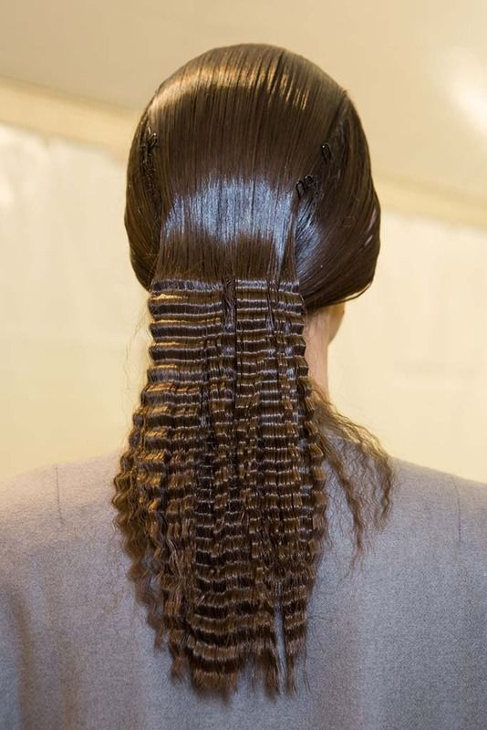 Модельєри дуже часто воліють використовувати на манекенницях зачіску у вигляді кінського гофрованого хвоста. Трепетні образи більш вигідно підкреслюють красу жіночих новинок дизайнерського одягу. Завзяті заломи в хвості, ще більш яскраво виглядають на контрасті з гладкими прямими волоссям біля коренів. Щоб зробити таку зачіску у домашніх умовах, вам потрібно всього лише пару хвилин часу.