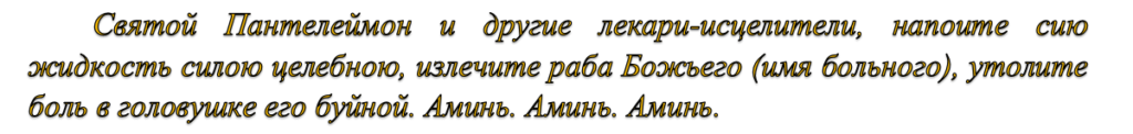 Читають тричі молитву «Отче Наш» і один раз молитву Святому Пантелеймону: