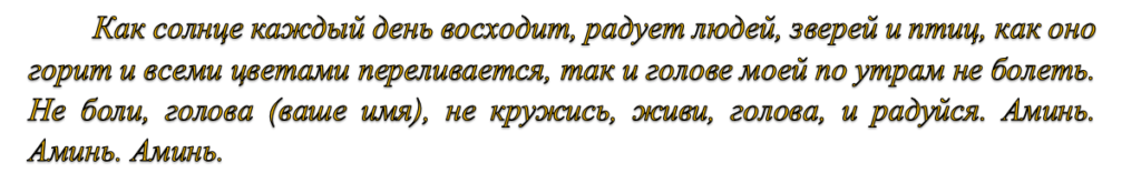 Якщо мучать сильні головні болі, вранці допоможе дієвий змова. Повертаються обличчям до сонцю і проводять вказівним пальцем по голові. Вимовляють: