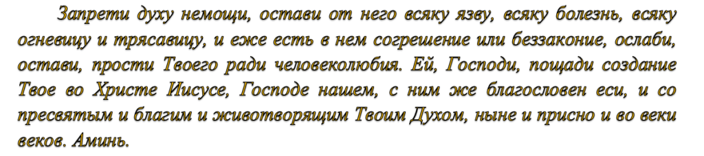 Після прочитання роблять три ковтки святої води.