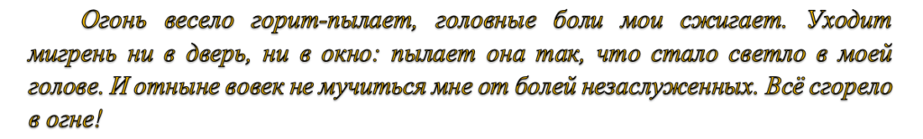 При перших ознаках настання головних більш допоможе наступний ритуал. Свічку, куплену в церкві, загортають у клапоть натуральної тканини. Тримають у руках і вимовляють: