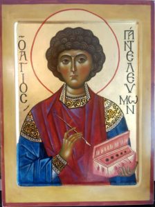 Рано вранці в центр трикутника з монет ставлять скляну посудину зі святою водою. Запалюють свічки і вимовляють три рази молитву «Отче Наш» і молитву Святому Пантелеймону: