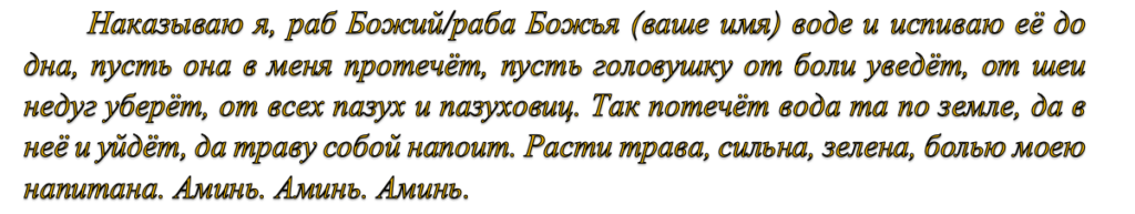 При пульсуючого болю, що посилюється при напруженні і супроводжується нудотою, допоможуть наступні змови на джерельну воду.