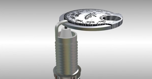 - Округлі інструменти для вимірювання зазору свічки запалювання мають два діаметра. На внутрішньому діаметрі шкала проградуйована, і вона показує товщину зовнішнього діаметра. Зовнішній діаметр встановлюється безпосередньо між електродами свічки, і монета обертається до тих пір, поки товщає зовнішній діаметр не застопориться. У цей момент слід за шкалою визначити, наскільки великою є відстань між електродами.