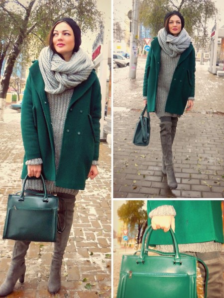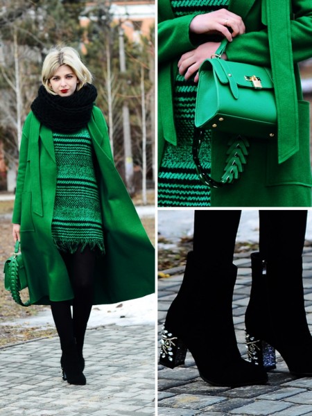 У дуеті з теплим одягом зеленого кольору краще всього виглядають схожі по тону аксесуари, але тут важливо пам’ятати, що вони не повинні повністю зливатися з базовим елементом гардеробу. Приміром, до пальто смарагдового кольору підійдуть яскраво-салатовий шарф або сумка. Цього правила слід дотримуватися, підбираючи не тільки додаткові деталі, але і одяг – так образ вийде цілісним і гармонійним.