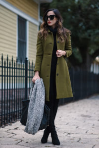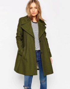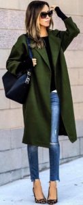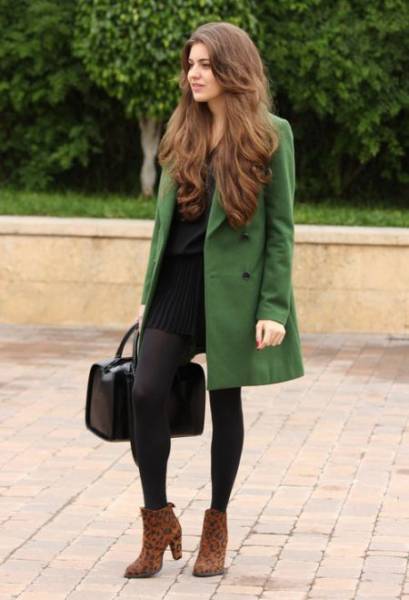 Ніколи не втратить актуальність темно-зелене двобортне пальто з відкладним коміром. Приталені моделі з поясом ідеально підходять до елегантним класичним суконь, брюк зі стрілками та спідниць-олівець.
