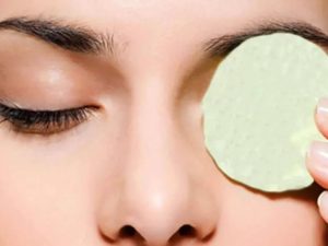 Якщо мало часу на збори, а набряклі повіки натякають на минулий бурхливу вечірку, варто скористатися контрастними компресами зеленого чаю під очі. Потрібно заварити звичайний чай, але поділити його на 2 частини, одну залишити, а другу розлити по формочках і помістити в морозилку, щоб отримати кубики льоду. Коли шматочки льоду з чаю готові, потрібно трохи розігріти решту напою. Вмочити в нього ватний диск, прикласти його до набряку на 2 хвилини. Після під очима необхідно протерти льодом. Повторити 5 разів.