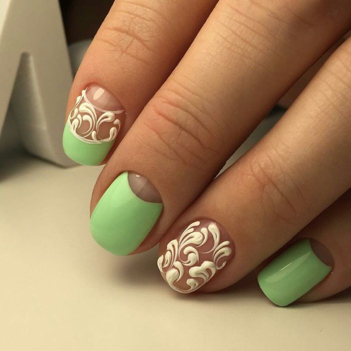 Насправді, зелений колір ідеально підходить для творчих експериментів і створення різних малюнків. Тому ми підібрали найбільш модні і цікаві варіанти дизайну, серед яких ви точно підберете щось підходяще для себе.