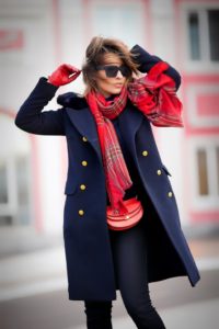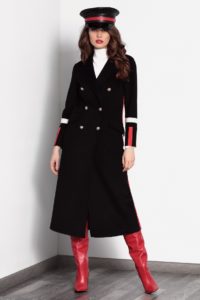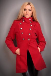 Виділитися з натовпу жінці допоможе стильне пальто в стилі мілітарі яскраво-червоного відтінку. Його можна поєднувати з чорними і темно-синіми речами і аксесуарами.