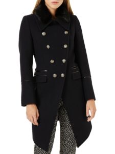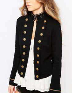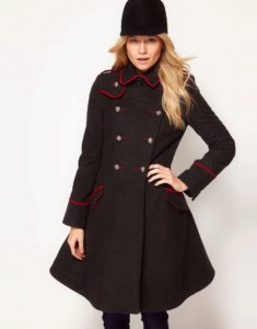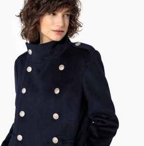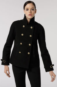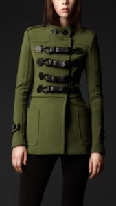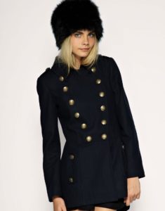 - пальто жіноче мілітарі зазвичай декороване двома рядами великих металевих ґудзиків, на манер військовій шинелі.