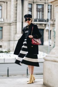 Мініатюрна сумочка, червоний берет, високі лаковані чоботи – і жіночний, але в той же час, зухвалий образ готовий.