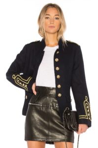 Стильно виглядає поєднання жіночого пальто-жакети в стилі мілітарі і короткій шкіряній спідниці. Доповнити образ можна футболкою з яскравим принтом або, навпаки, обмежитися однотонної майкою.