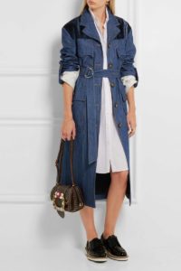 Стильно і нетривіально виглядає джинсове жіноче пальто в стилі мілітарі.