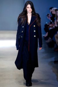 Ще один модний фасон – редингот. Головна особливість моделі – расклешивающийся донизу силует. Редингот рекомендується носити жінкам з типом фігури «перевернутий трикутник» (для цього типу характерні вузькі стегна і широкі, значно ширше стегон, плечі) — для того, щоб візуально скоректувати фігуру і зробити її більш гармонійною, пропорційною.