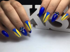 Жовто-блакитний манікюр – нейл-арт, який підкорив серця мільйонів дівчат. Він простий у виконанні і різноманітний в дизайнах. Також підійде практично для будь-якого заходу: ювілей у родича або похід на роботу.