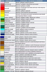 Правила отримання більш складних відтінків для використання в нейл-арте представлені в таблиці «Змішування кольорів гель-лаку» на малюнку нижче.