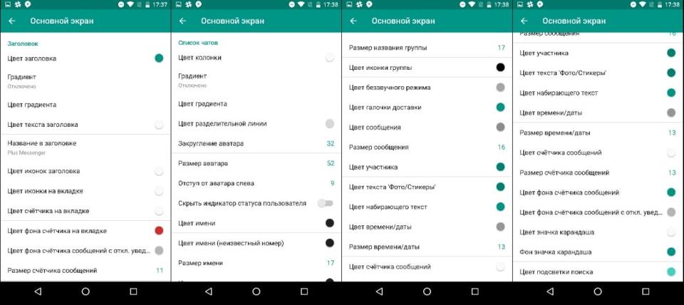 Все це Plus Messenger дозволяє. Я не знайшов ні однієї гарної сторонньої теми, а ось над розмірами елементів інтерфейсу попрацював — зробив їх зручними для себе.