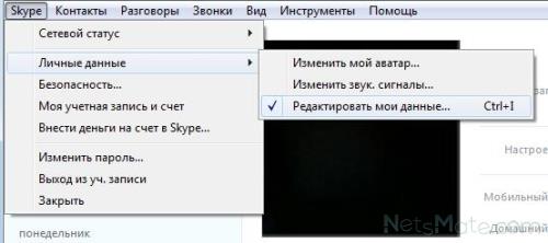 Щоб поставити картинку на аватар, потрібно зайти в свій аккаунт і натиснути на нік або зайти в меню «Особисті дані» пункту «Skype» головного горизонтального меню: