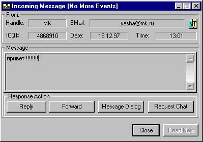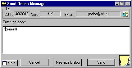 Ви можете надіслати коротку записку будь-якому ICQ – користувачеві незалежно від того, знаходиться він в онлайні. Ваше повідомлення буде отримано, навіть якщо він у дісконнекте.