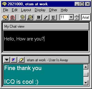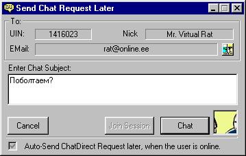 Щоб поговорити з ким-то, можна скористатися функцією Chat. Викликати на чат можна тільки ICQ-користувача, що знаходиться в онлайні.