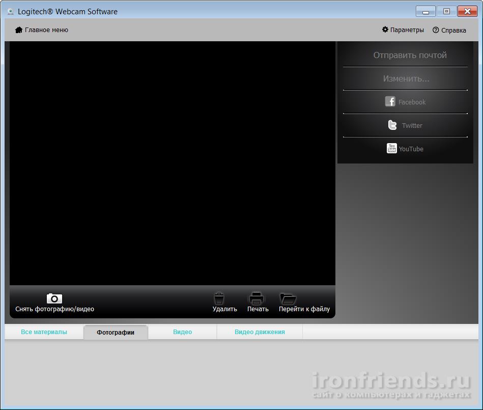 В інсталяційний пакет входить програма Logitech Webcam Software, яка дає можливість знімати фото, відео, має безліч додаткових функцій і налаштувань.
