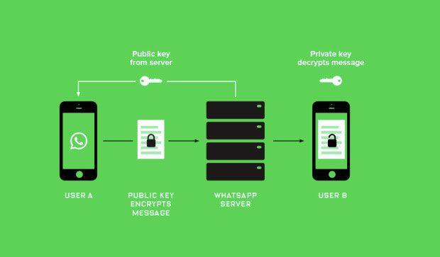 Ян Кум, один з власників Вацап, вважає, що дані, надіслані користувачами один одному, не можуть бути використані іншими особами або проглядатися ними. Саме тому потрібно шифрування в Whatsapp. Воно називається «end-to-end encryption» і проводиться за замовчуванням. Розшифровка також проводиться автоматично пристроєм одержувача повідомлення.