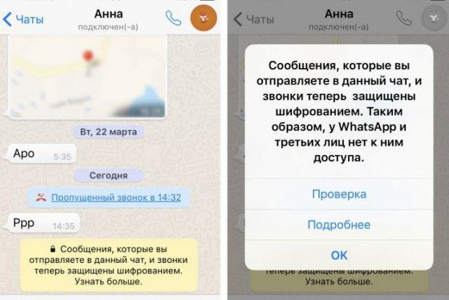 Навіщо власник Ватсап включив шифрування? Достеменно не відомо, що за конфлікт відбувся між силовими структурами країн, їх об’єднань і керівництвом компанії, але тепер Whatsapp шифрує всі дані, які надсилаються користувачами. Виходить, що тільки відправнику та одержувачу повідомлень видно їх зміст. Сюди відносяться: