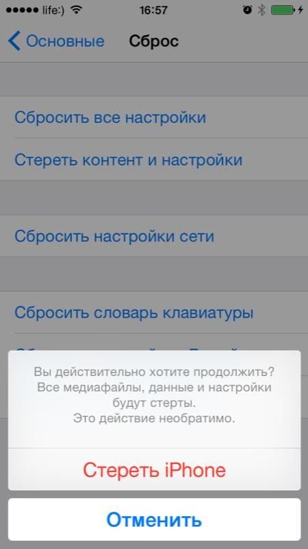 Асистент налаштування iOS може бути запущений не тільки після відновлення або оновлення iPhone, якщо ви хочете відновити дані з копії iCloud на вже налаштованому апараті, асистент налаштування iOS буде запущений і після стирання вмісту і налаштувань в меню «Скидання».