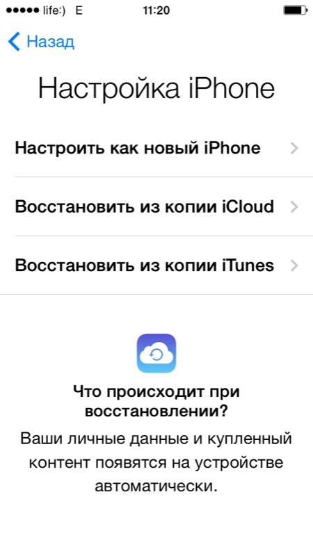 Спосіб відновлення даних з бекапа безпосередньо залежить від того, яким чином ви виконували резервне копіювання. Якщо ви створили копію пристрою в iCloud, відновити дані з нього можна тільки за допомогою асистента налаштування при активації iPhone (підключення апарату до інтернету по Wi-Fi обов’язково).