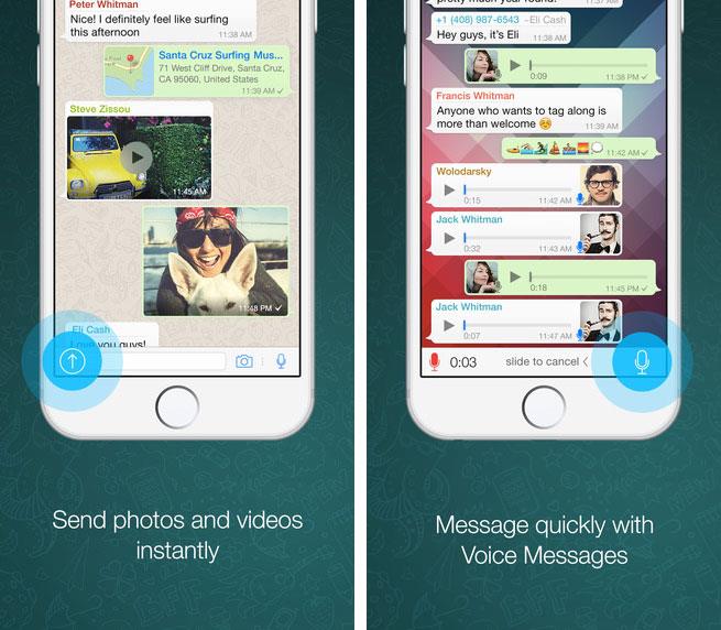 Крім підтримки голосових дзвінків у новій версії WhatsApp з’явилася можливість обмінюватися вмістом — відправляти фотографії, відеоролики і посилання прямо у програмі з інших додатків. В чатах з’явилася кнопка камери. Тепер можна робити знімки та відеозаписи, а також швидко вибирати останні фото/відео з Фотоплівки.