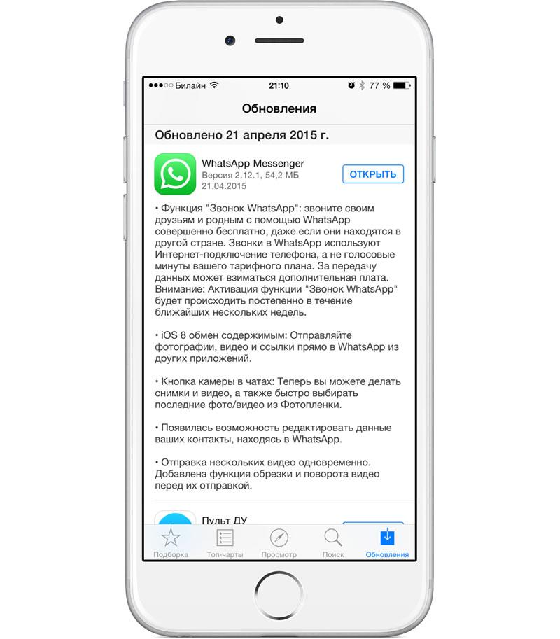 Версія популярного месенджера WhatsApp для iOS отримала підтримку голосових дзвінків. Про це повідомляється на сторінці програми в каталозі App Store, в розділі опису оновлень. Раніше функція була доступна тільки для Android-смартфонів.