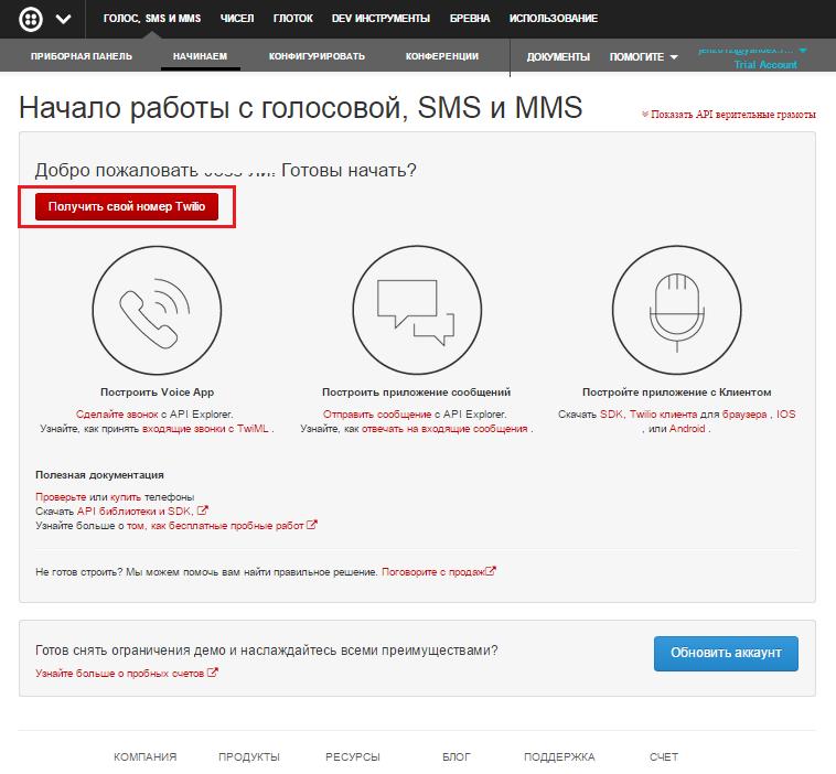 Для отримання завершення процесу натисніть кнопку «Get you Twilio number» (Отримати свій Twilio).