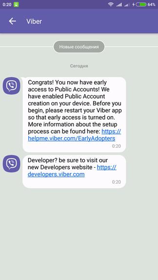 Паблік акаунт Viber поєднує в собі переваги ботів і каналів Телеграм. У ньому є як загальний чат, доступний всім передплатникам, так і індивідуальні діалоги між адміністратором і кожен передплатником.