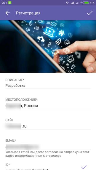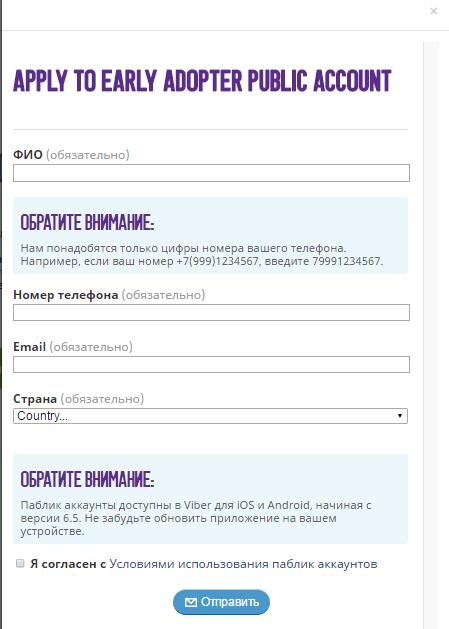 Заповніть анкету Viber за посиланням http://www.viber.com/ru/public-accounts