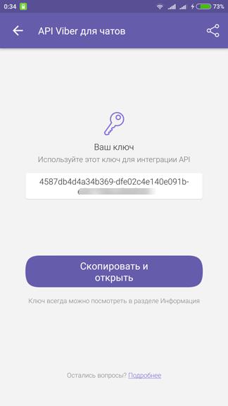 Вкажемо в налаштуваннях ключ API, скопійований з Viber: