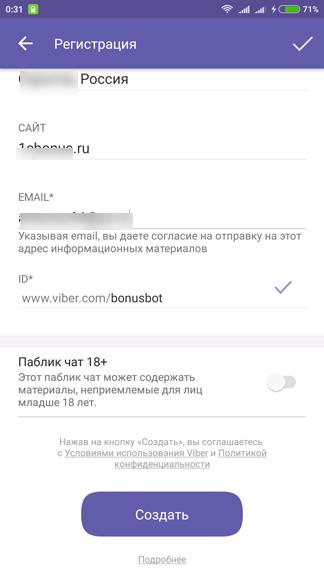 Введіть необхідні дані для реєстрації аккаунта, зверніть увагу, що за імені публічного акаунта користувача зможуть знайти вас в Viber.