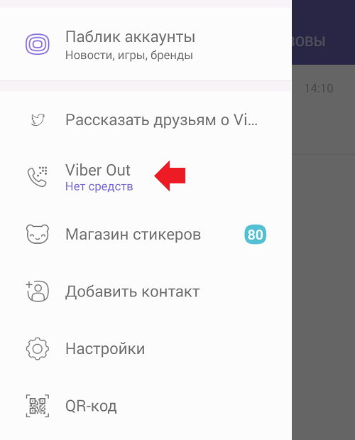 Робите свайп від лівої частини екрану до правого, щоб з’явилося меню. У ньому обираєте пункт Viber Out.
