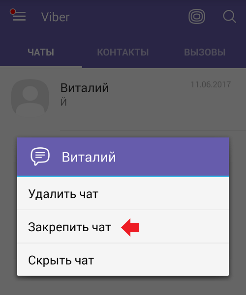 Для закріплення чату відкрийте сторінку з чатами в Viber.