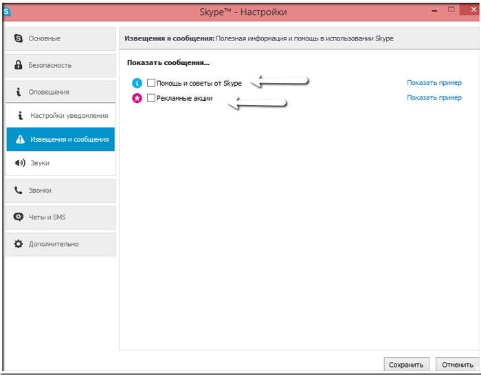 Для цього заходимо вкладка Оповіщення => Сповіщення та повідомлення. Знімаємо галочки навпроти рядків: