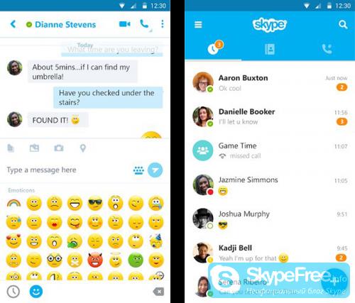 Скайп вважається однією з найбільш пріоритетних програм у середовищі IP-телефонії, що дозволяє при з’єднанні з мобільним інтернетом або Wi-Fi розсилати повідомлення і дзвонити іншим користувачам абсолютно безкоштовно! Додаток має дуже великий функціонал: крім звичайних голосових дзвінків, користувачам доступна і відеозв’язок (природно, при наявності веб-камери на смартфоні або планшеті), тут же можна обмінюватися різними документами і файлами з мультимедійної колекції, а також відправляти один одному смішні смайли, що відображають ваші емоції.