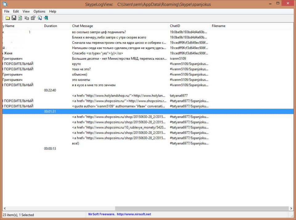 І так раніше я вже розповідав де лежить історія та як видалити історію в skype, раджу подивитися. Припустимо, ви завантажили чию, історію і хочете його подивитися, звичайно ж в цілях безпеки:), ну або реально у себе знайти потрібну посилання в цьому повідомленні, але не пам’ятаєте від кого. Є безкоштовна утиліта SkypeLogView. SkypeLogView дозволить вам легко подивитися історію листування skype. Запускаємо утиліту.