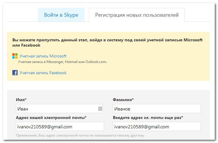 Щоб зареєструватися Skype: