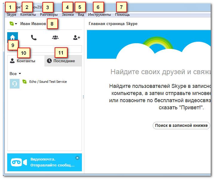 9) Домашня сторінка Skype