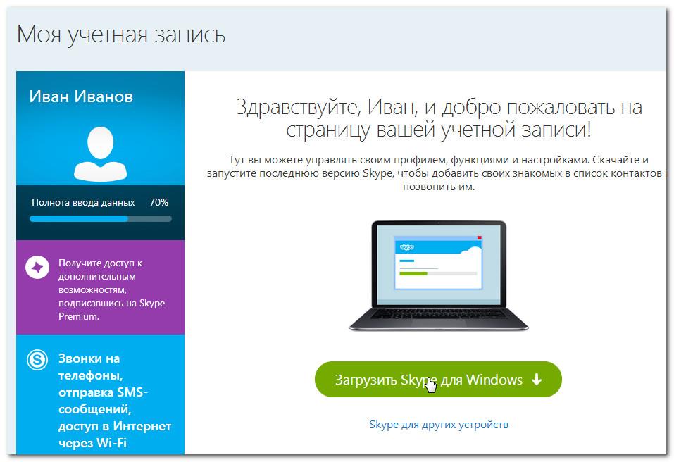 Якщо Скайп не почне викачуватися автоматично після того, як ви створите аккаунт, ви можете завантажити його з ссылке: Завантажити скайп
