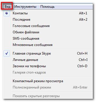 Використовуйте меню Вигляд для переходу до будь-вкладці, не видимою в даний момент: ваш профіль, голосові повідомлення, отримані або відправлені файли і т. д.