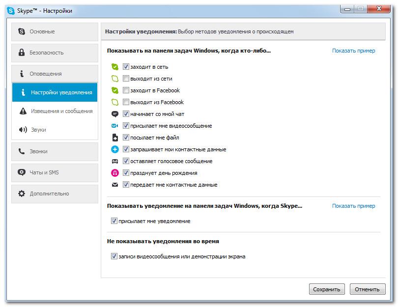 Оповіщення — це повідомлення, в яких Skype повідомляє про які-небудь події або дії, наприклад, коли хтось з’являється онлайн або хоче додати до списку контактів. Більшість повідомлень відображається у верхній частині екрана, тому ви завжди можете зрозуміти, що відбувається в Skype, навіть якщо його вікно закрите.
