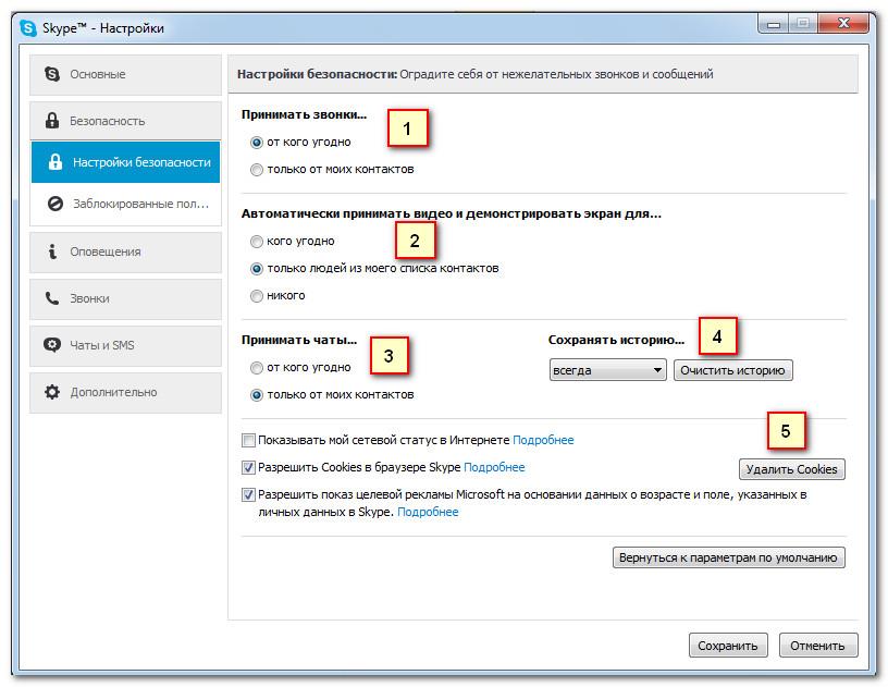 Дозволяє контролювати, від кого приймати дзвінки в Скайпі. Якщо ви не хочете приймати дзвінки від незнайомих людей, виберіть тільки від моїх контактів.